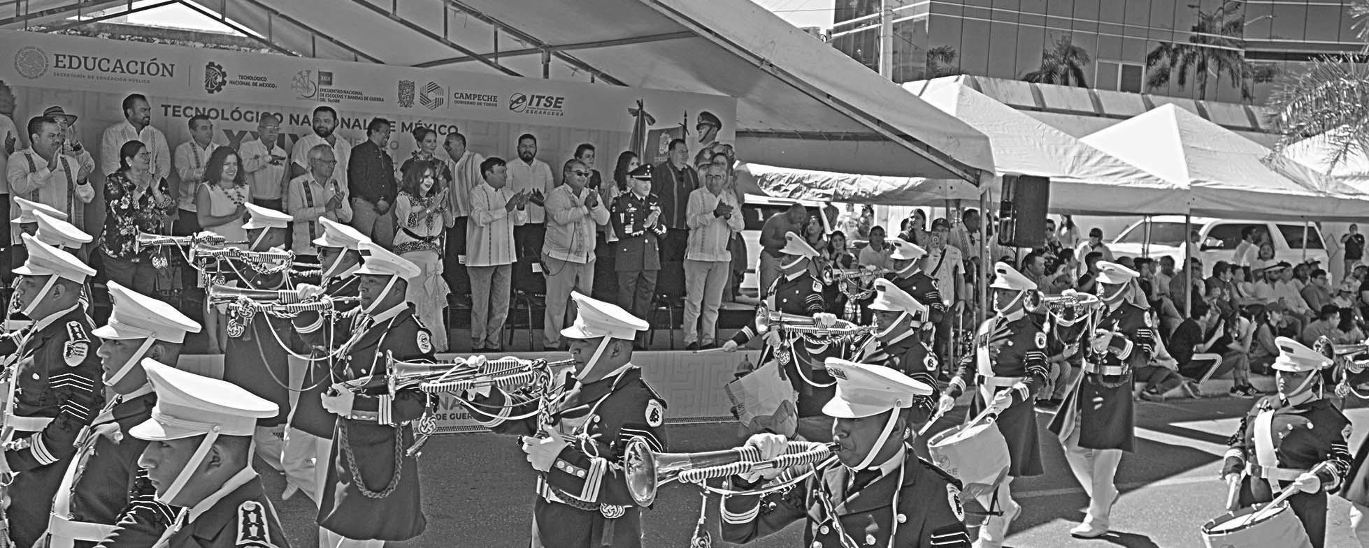 Realizan Tecnológicos desfile de escoltas y bandas de guerra