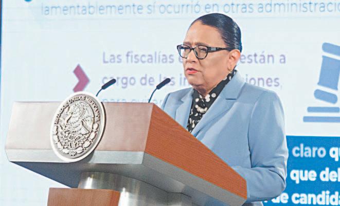 ROSA Icela Rodríguez, secretaria de Seguridad, recordó que en administraciones pasadas sí ocurrieron asesinatos de aspirantes federales y a gobernadores.- (
