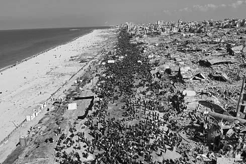 Una enorme multitud de refugiados palestinos que caminaron cargados con sus pertenencias, algunos sosteniendo bebés o empujando sillas de ruedas, se extendían por una larga autopista paralela a la costa, en un impactante retorno del éxodo masivo desde el Norte que se vio al inicio de la guerra, y que muchos palestinos temían Israel mantuviera de forma permanente.