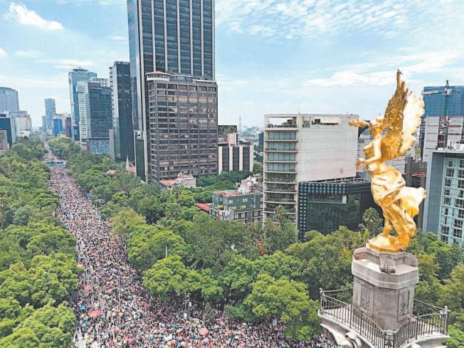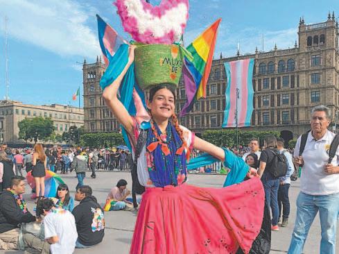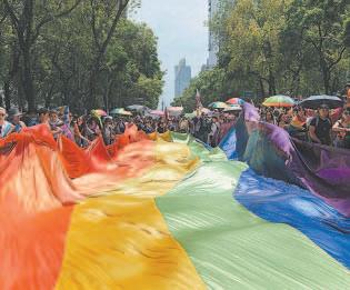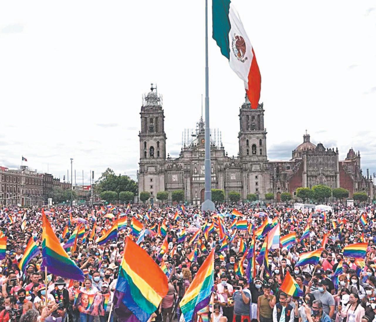 por miles de banderas de arcoíris inició en el Ángel de la Independencia, con dirección al corazón de la capital, donde el Zócalo fue su punto final. Antes, los participantes hicieron una parada entre la Glorieta de las Mujeres que Luchan y el Antimonumento de los 43 para realizar una protesta silenciosa en conmemoración de todas las víctimas de crímenes de odio.- (Cuartoscuro)