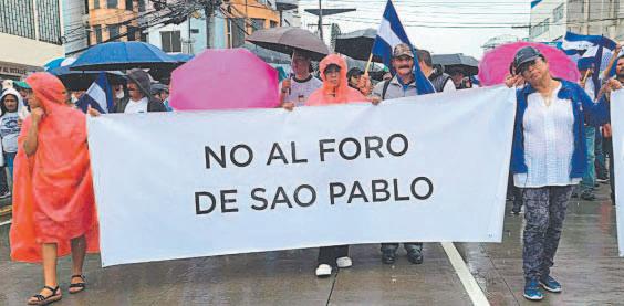 TEGUCIGALPA.- Cientos de simpatizantes y militantes de partidos y organizaciones de la oposición derechista marcharon ayer en Honduras en protesta por una reunión del Foro de Sao Paulo, realizada en el marco del 15° aniversario del golpe de Estado contra el expresidente Manuel Zelaya.