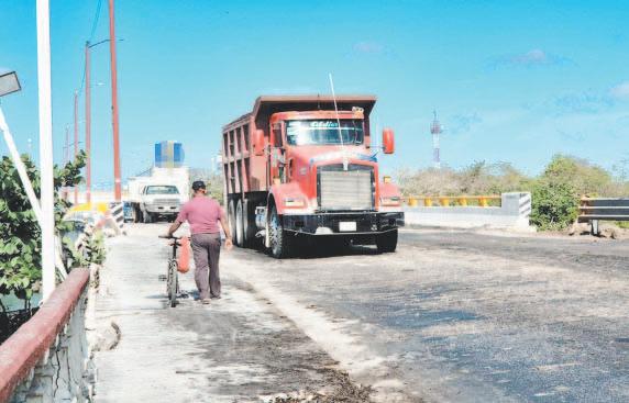 EL único puente que conecta a la bahía de la mala pelea con el resto del sureste del país está en pésimas condiciones por el paso de unidades pesadas.- (J. May)