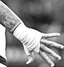 te a él con las manos en los bolsillos, excepto cuando se secaba la cara con un pañuelo.
