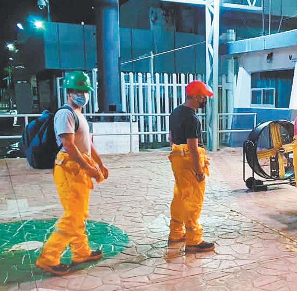 VÍA aérea, se bajó de los complejos petroleros a obreros que presentaban erupciones cutáneas, fiebre, dolor de garganta, de cabeza, y musculares, entre otros síntomas; hasta el momento NO hay una postura oficial de la Secretaría de Salud. (I. Lozano)