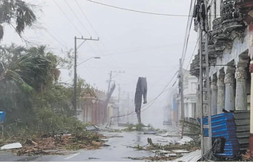 retorcidas. Calles de los poblados y de La Habana estaban llenas de ramas de árboles, pero también de tejas y de pedazos de concreto de fachadas de casas que no resistieron la embestida del huracán. La capital, una de las zonas más afectadas por los vientos y aguaceros, donde viven dos millones de personas, amaneció con un cielo