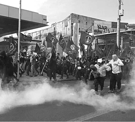 terio General de Santiago, el lugar donde se emplaza el memorial de las víctimas de la dictadura y donde finalizaba la manifestación. Más de mil 800 de policías repelieron con carros lanza-aguas y bombas lacrimógenas los ataques con piedras, bombas incendiarias y bengalas lanzadas por los manifestantes, que lograron ingresar al interior del cementerio, donde levantaron barricadas incendiarias.