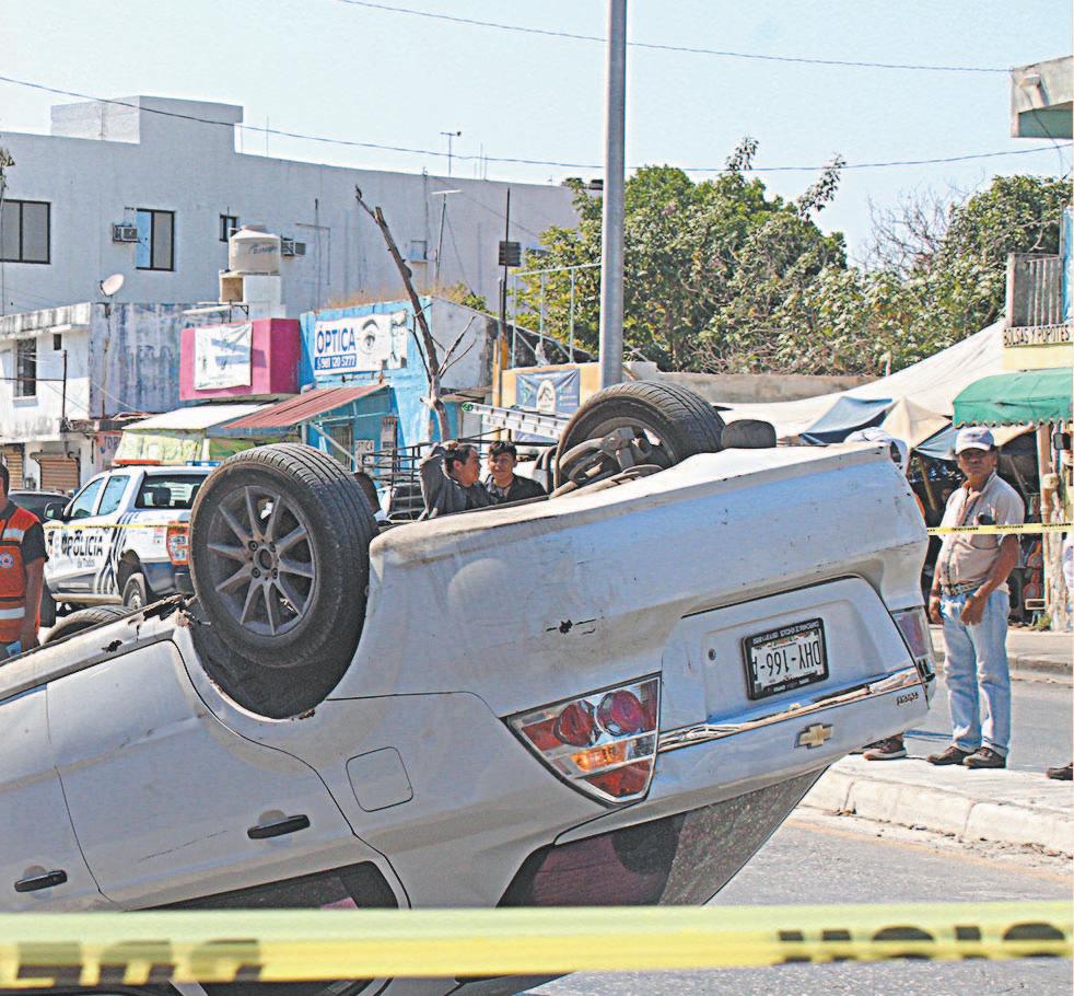 Ebrio choca con tres autos y termina volcado