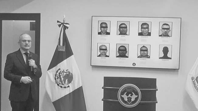 Eleuterio “N” de 37, José Antonio “N” de 42, Cristian Alejandro de 19, Jonathan de 34, y Omar Alejandro de 30 años de edad. Por separado, Gerardo Palacios Pámanes, secretario de Seguridad del Estado, dijo que fueron cesados ocho elementos de la policía estatal Fuerza Civil, de los cuales siete fueron detenidos ayer, y uno se encuentra prófugo.