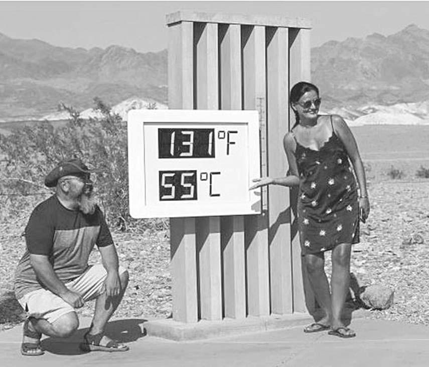 Oficialmente, el récord mundial absoluto fue establecido en el Valle de la Muerte en los 56.7°C por la OMM. Pero éste data del 1913 y varios meteorólogos no lo consideran fiable, explicó el científico, que prefiere ceñirse a los 54.4°C registrados en el mismo lugar en el 2020 y el 2021. En fecha reciente, el termómetro digital marcó 55°C.