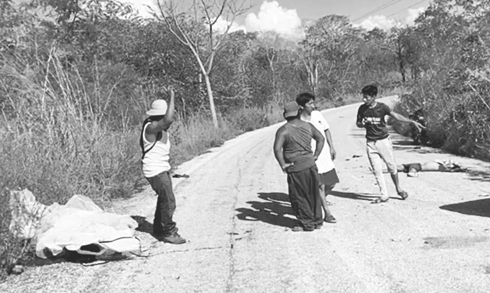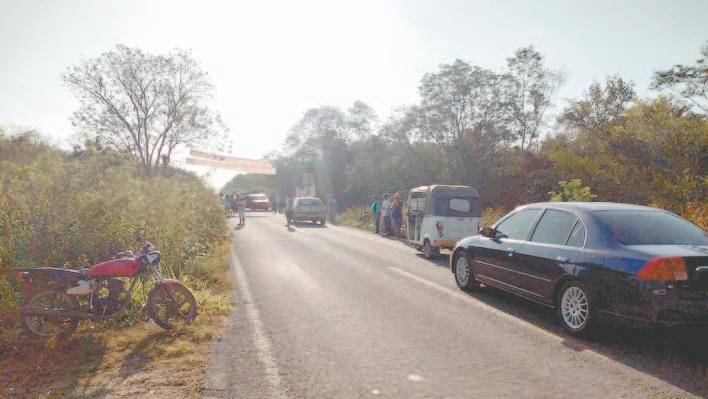 EL exceso de velocidad provocó un encontronazo de frente entre una motocicleta, con dos jóvenes a bordo, y una camioneta en una curva, cuyo conductor huyó del sitio; sin embargo, los pobladores reconocieron la unidad y señalaron que el propietario es de Yohaltún.- (Ángel Rodríguez)