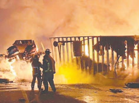 UN camión de pasajeros que se dirigía a Oaxaca procedente de San Quintín, Baja California, con destino final a Tapachula, Chiapas, impactó con un tractocamión, lo que causó que se incendiaran.- (POR ESTO!)