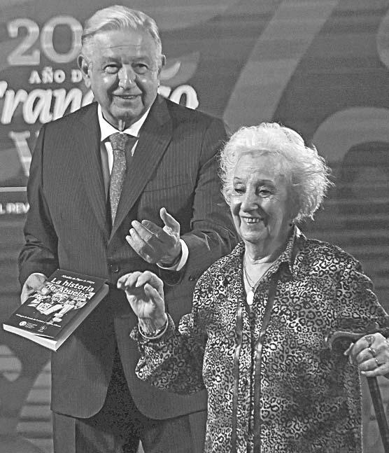 CIUDAD DE MÉXICO.- El presidente Andrés Manuel López Obrador recibió ayer en su conferencia matutina a Estela de Carlotto, fundadora de Abuelas de Plaza de Mayo, organización no gubernamental creada en 1977 a favor de los derechos humanos en Argentina.