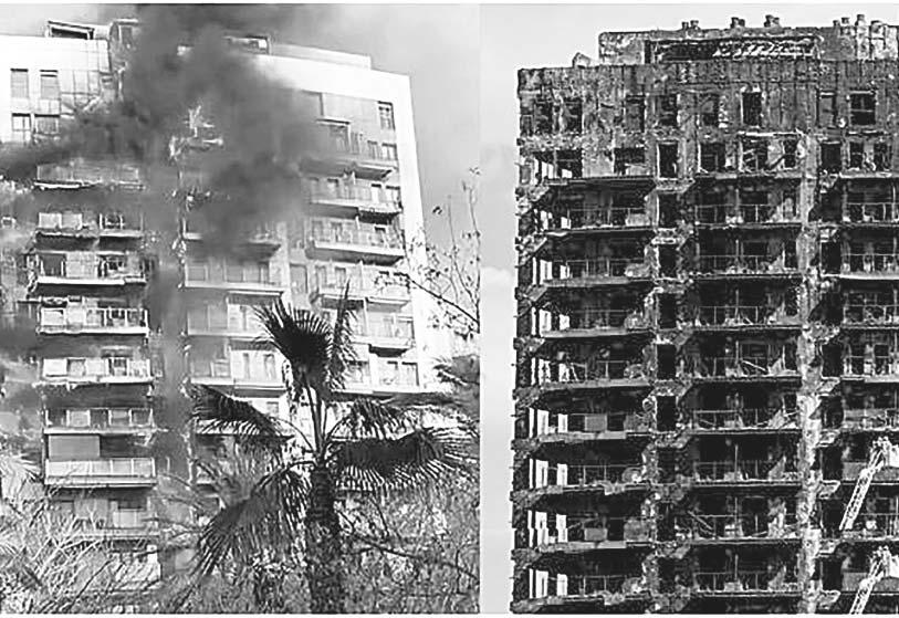 fueron atendidas con lesiones de diversa consideración, entre ellas siete bomberos, pero sus vidas no corren peligro. El fuego consumió casi por completo el edifi cio y lo hizo muy rápidamente, dejando imágenes impactantes. Fue “horro-