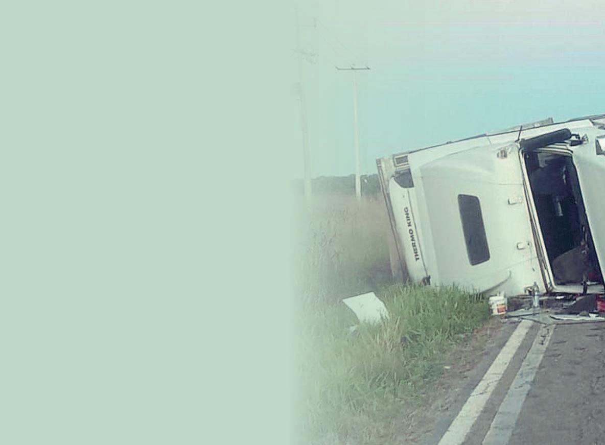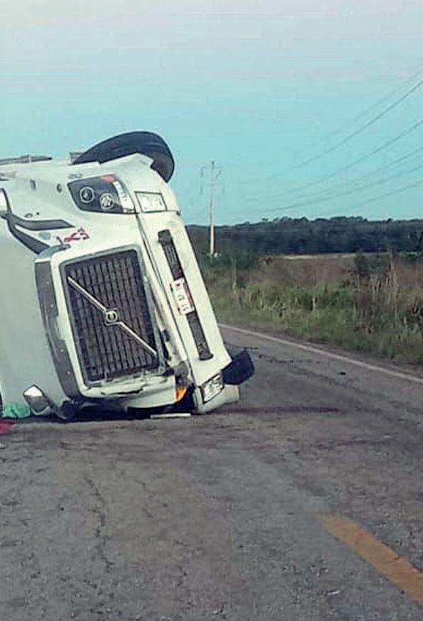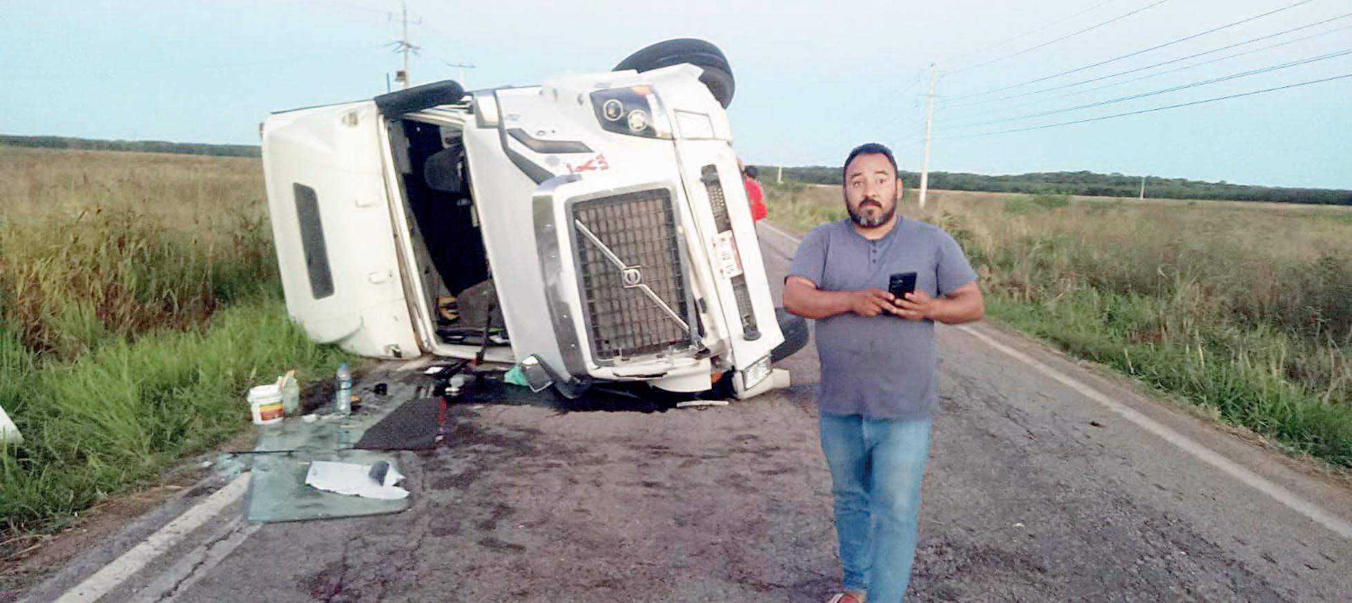 Tráiler con sandías vuelca por Oxá; chofer se fisura una mano