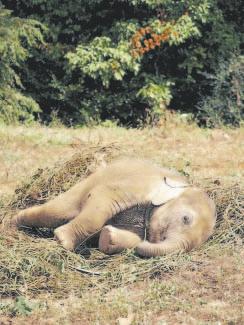 Los cinco pequeños elefantes, de menos de tres meses a un año,