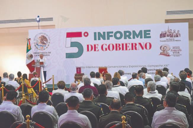 Campeche pasa a la historia tras ser elegido por el Presidente de México, Andrés Manuel López Obrador como sede para rendir su Quinto Informe de Gobierno. Reconoce que muchos años estuvo abandonado, pero ya mejoró las condiciones de vida y trabajo mediante los programas del Bienestar. Después encabeza la primera prueba del Tren Maya rumbo a Teya, Yucatán