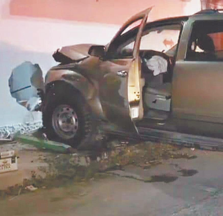 UN boquete dejó el golpe del vehículo contra la pared de la vivienda en la colonia San Carlos; el responsable fue detenido.- (R. Jiménez)