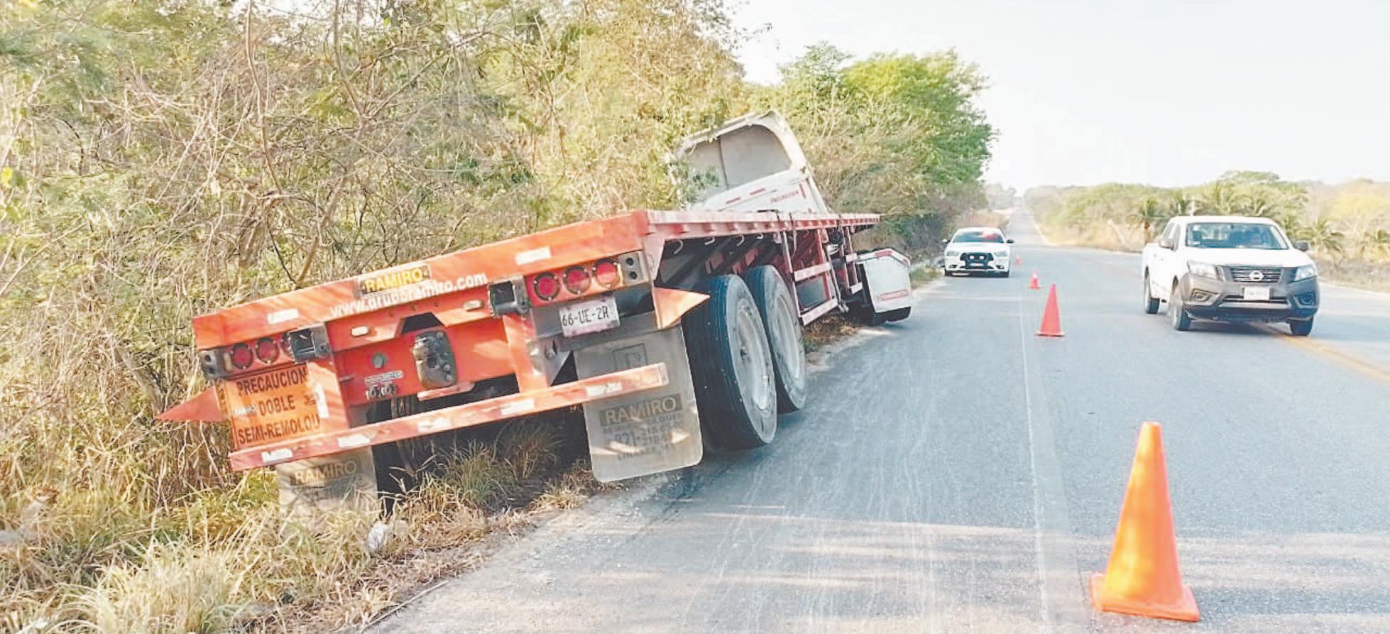 Tráiler se sale de carretera y rapiñan la carga
