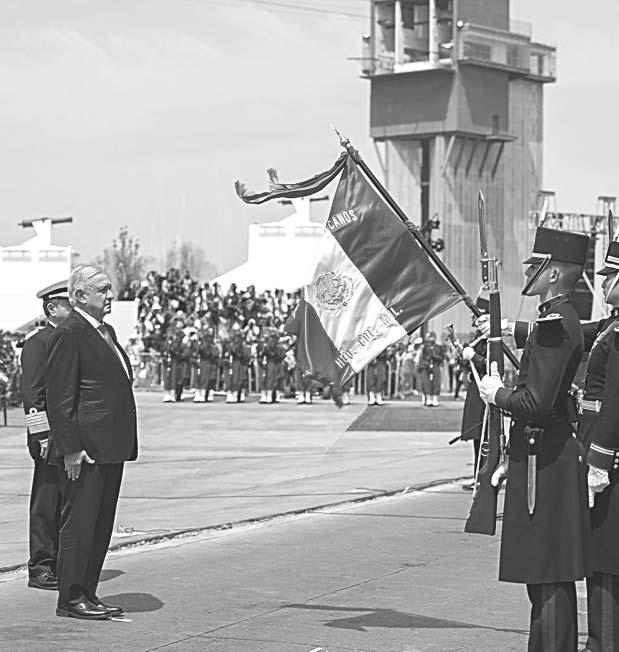 En el acto, López Obrador tomó protesta a los jóvenes del Servicio Militar Nacional y colocó una ofrenda floral en el mausoleo.