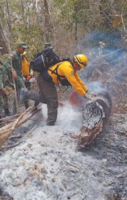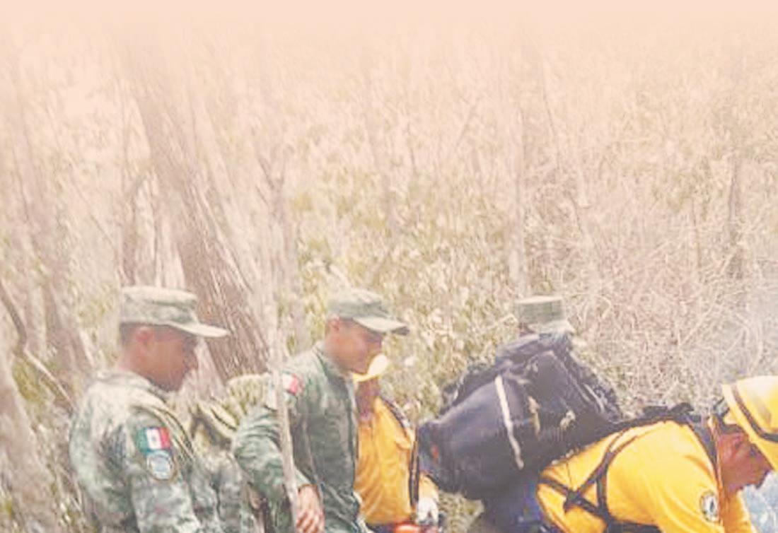 Según la dependencia desde el domingo se mantienen acciones para inhibir el fuego en la comunidad de El Potrero, a la altura del cerro Sagrado donde las llamas han consumido una extensa área arbolada.