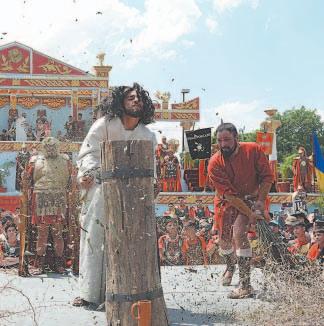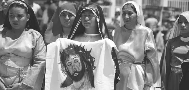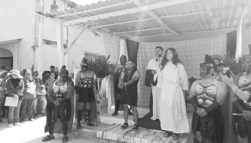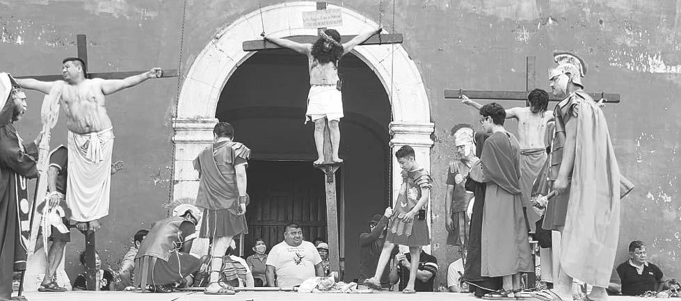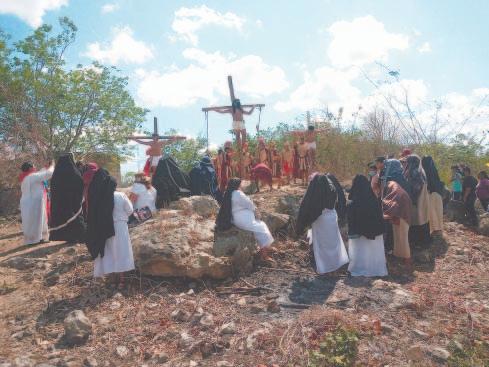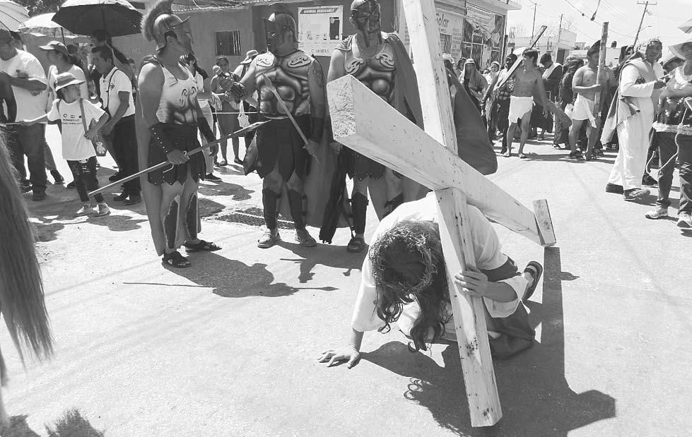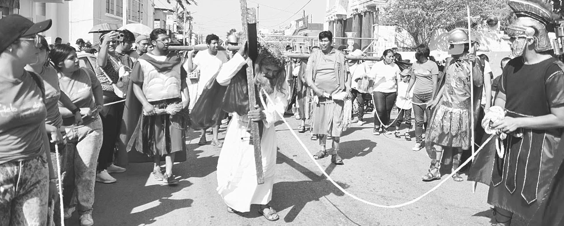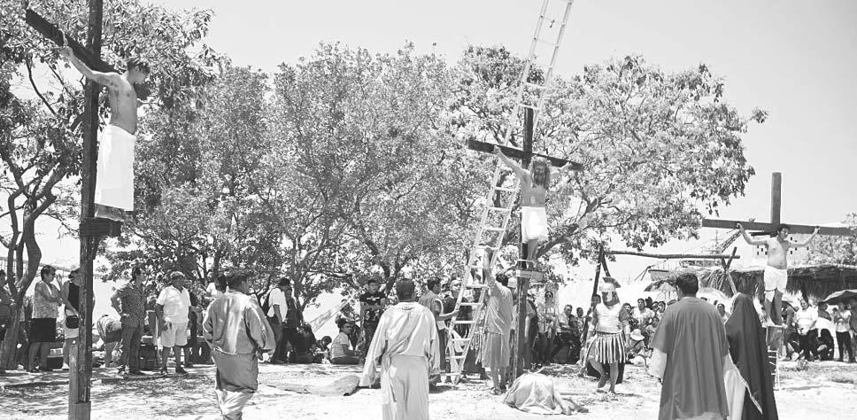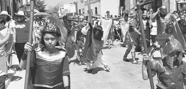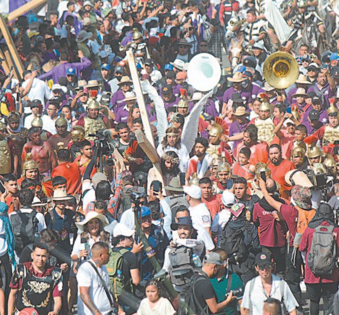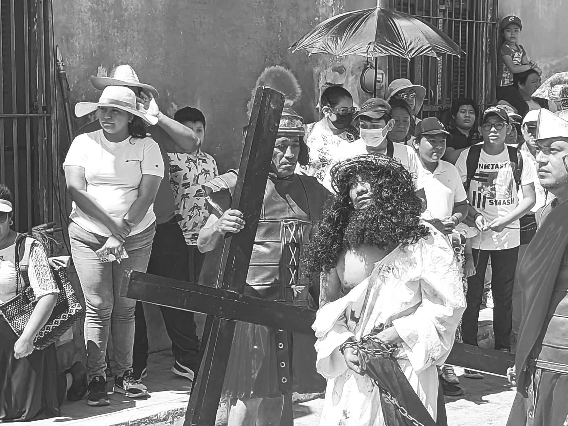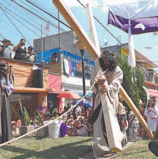 breros y lentes, para presenciar detrás de las vallas las escenas bíblicas de la muerte de Jesús.