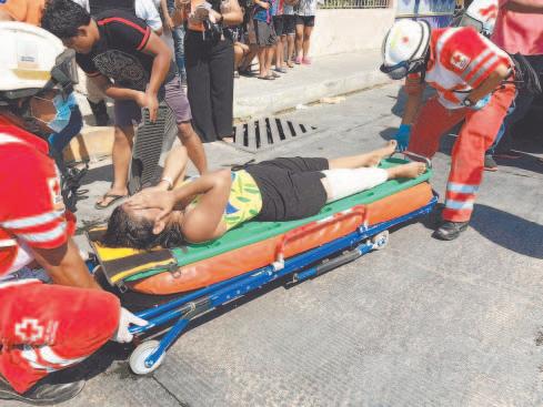 Mujer en moto derrapa y se fractura la pierna