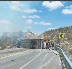 El tráiler marca Freightliner tipo nodriza que transportaba vehículos nuevos en la carretera Amozoc-Perote, volcó y dejó caer un par de autos tipo Mazda en la vialidad. El hecho ocurrió luego de que el conductor de la nodriza perdiera el control de la unidad en una curva del kilómetro 055+500 de la Ruta 140-D.