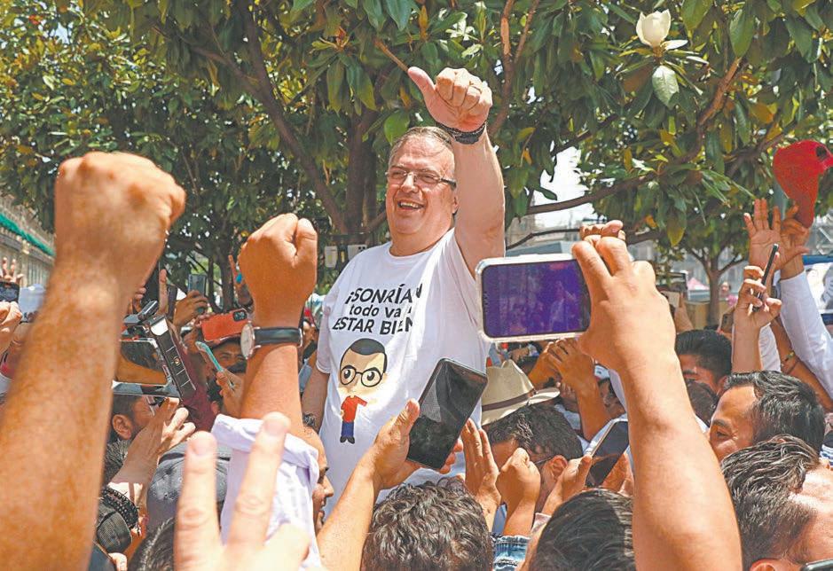 Tras reunirse por más de hora y media con el presidente López Obrador en el Palacio Nacional, Ebrard se fue caminando a la libre ría Porrúa, a unos metros del recinto histórico, donde ofreció una confe rencia de prensa. El camino fue de unos 20 minutos, ya que cientos de simpatizantes estaban a su paso, para saludarlo y darle apoyo.