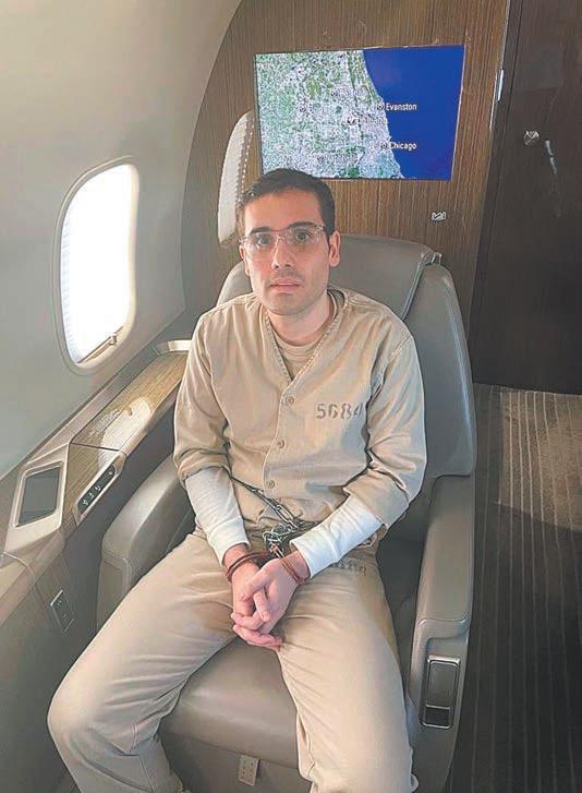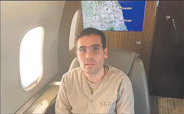 LA imagen muestra al integrante del Cártel de Sinaloa encadenado, en el asiento de un avión; el Buró Federal de Prisiones lo tiene bajo su custodia, con el número de registro 72884-748.- (POR ESTO!)