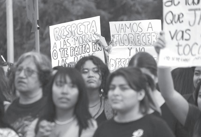 EL grupo de mujeres se coló entre dos contingentes y llegó al palco de las autoridades, quienes se vieron sorprendidas ante los gritos de reclamo por falta de resultados en las investigaciones de las desapariciones de sus familiares.- (David Pérez)