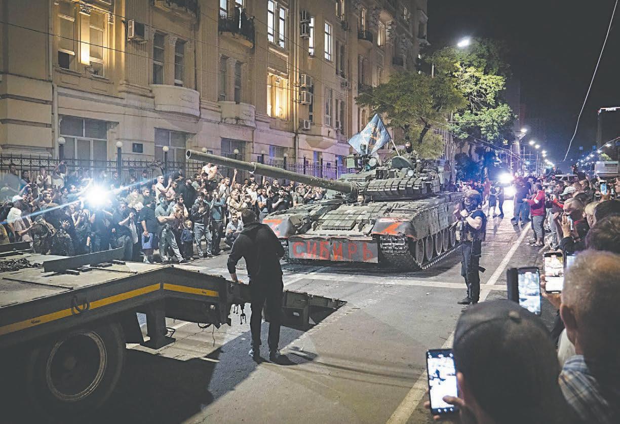 YEVGENYTropas del grupo paramilitar entraron ayer en Rostov sin hacer un disparo, aplaudidos por residentes. (AFP) “El Presidente está muy equivocado”, dijo el militar amotinado. (AP) Putin prometió castigar la “traición” de promover una rebelión. (AP)