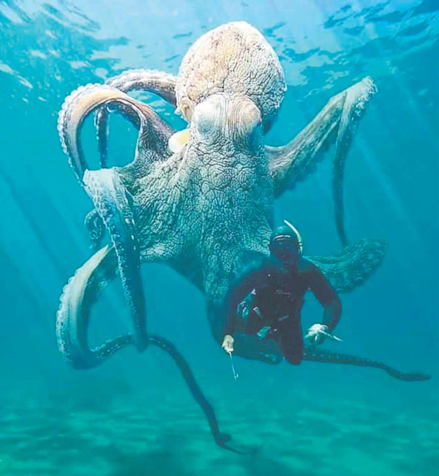 El molusco sorprendió a un grupo de hombres de mar, quienes no dudaron en filmar el momento y compartir el video en redes sociales, donde se hizo viral entre los cibernautas
