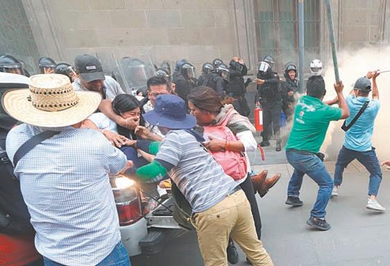 CIUDAD DE MÉXICO.- Maestros de la Coordinadora Nacional de Trabajadores de la Educación (CNTE) se liaron a golpes ayer con elementos de la Secretaría de Seguridad (SSC) de la Ciudad de México en inmediaciones de Palacio Nacional, en donde rompieron vidrios de la puerta de la esquina de Corregidora, frente a la Suprema Corte de Justicia de la Nación (SCJN), acceso que es usado exclusivamente por el presidente Andrés Manuel López Obrador y su familia.