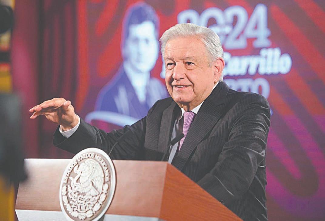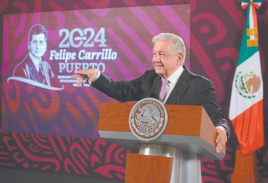 todo, que hay mucha responsabilidad en el manejo de las finanzas públicas y que la economía de México es sólida y no va a cambiar la política económica que hemos venido aplicando y que ha dado muy buenos resultados”, sostuvo. Entre las iniciativas que están pendientes están la reforma al Poder Judicial para elegir por voto popular a jueces y a la Suprema Corte, una modificación al sistema electoral, cambios en las pensiones y la elimi-