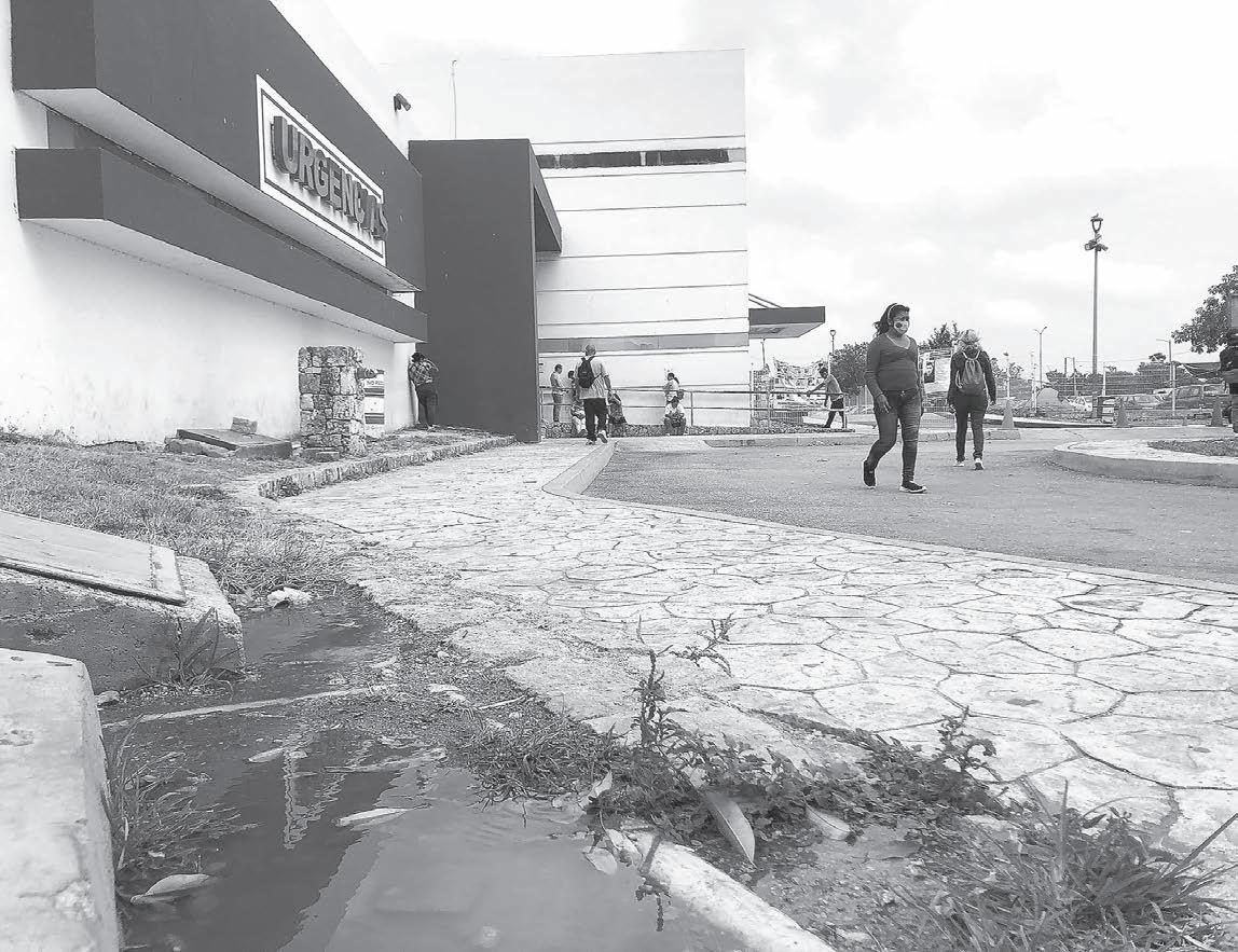LOS alrededores del nosocomio lucen descuidados, con hierba crecida y basura; además, en zonas que son paso obligado de personas, como es el área de Urgencias, los registros se desbordan, generando un olor nauseabundo.- (Rodolfo Flores)