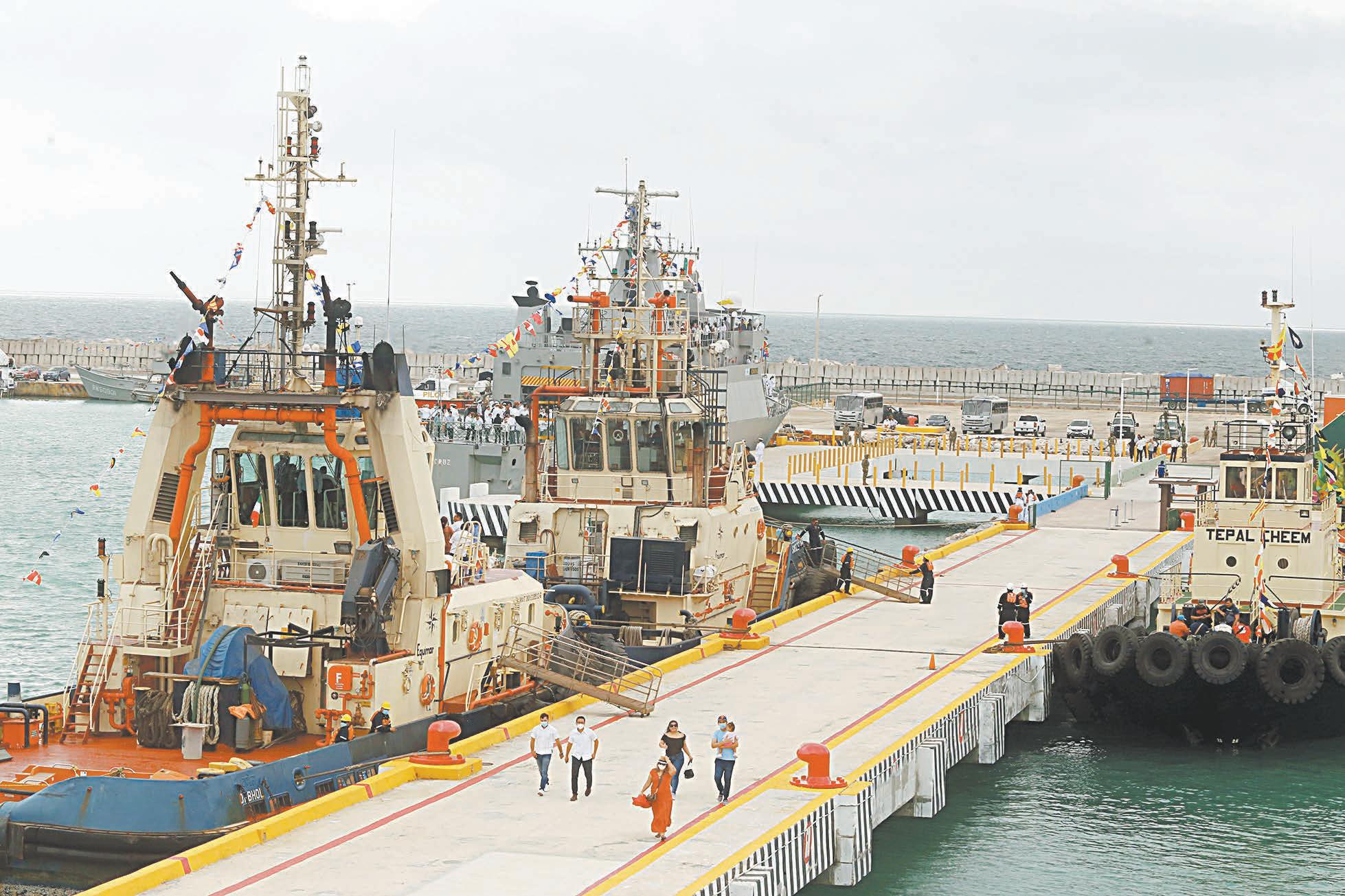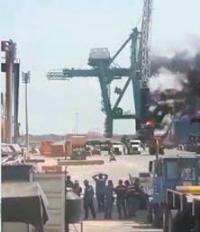 de la Guardia Costera y de la Policía desplegados muy cerca de los escombros y del portacontenedores averiado.