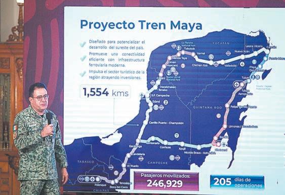 Desde la inauguración, el 16 de diciembre de 2023, el Tren Maya ha transportado en 205 días de operaciones a 246 mil 929 personas, cifra equivalente a llenar 2.6 veces el Estadio Azteca, informó el director general del Tren Maya S.A. de C.V., Óscar David Lozano Águila. Durante la conferencia matutina de ayer del presidente Andrés Manuel López Obrador, Lozano señaló que hasta el 11 de julio, el Tren Maya ha operado durante 205 días, en los que ha movido a 246 mil 926 personas, y tan sólo desde el 1 de enero a la fecha ha transportado a 43 mil 65 usuarios, de los cuales mil 808 han sido pasajeros internacionales, 17 mil 214 nacionales, 15 mil 988 locales y 8 mil 55 especiales.