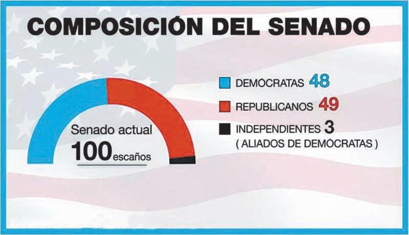 Los demócratas tienen hoy 51 escaños en el Senado y los republicanos, 49. Si los demócratas logran mantener la mitad de los