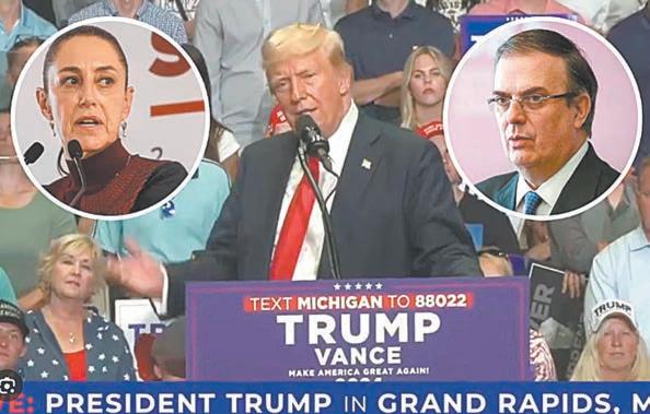 En su primer mitin con J.D. Vance, candidato republicano a la vicepresidencia, en Grand Rapids, Michigan, el candidato presidencial recordó cuando amagó al Gobierno Mexicano con aranceles y ordenó soldados para la frontera, y dijo que el presidente Andrés Manuel López Obrador, “ya no es Presidente de México”.