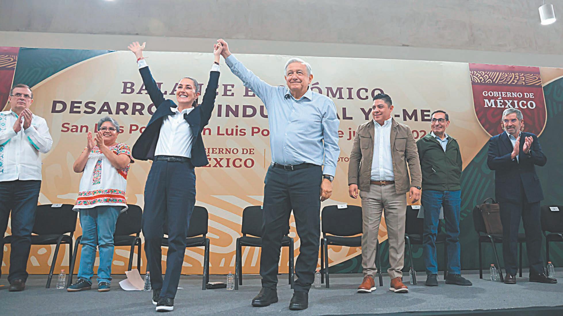 En su intervención en el Centro de Convenciones de esta entidad, Sheinbaum estuvo acompañada, además, por integrantes del equipo del mandatario federal, algunos de los cuales formarán parte de su gabinete a partir del 1 de octubre, así como otros que también trabajaron con el actual Mandatario.