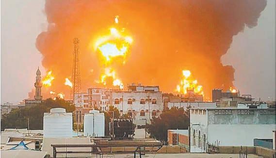 Un hombre entrevistado por la cadena indicó que muchos de los heridos eran empleados del puerto, donde según las imágenes los ataques provocaron un enorme incendio que se extendió y generó una imponente columna de humo negro. (Agencias)