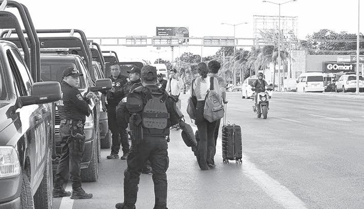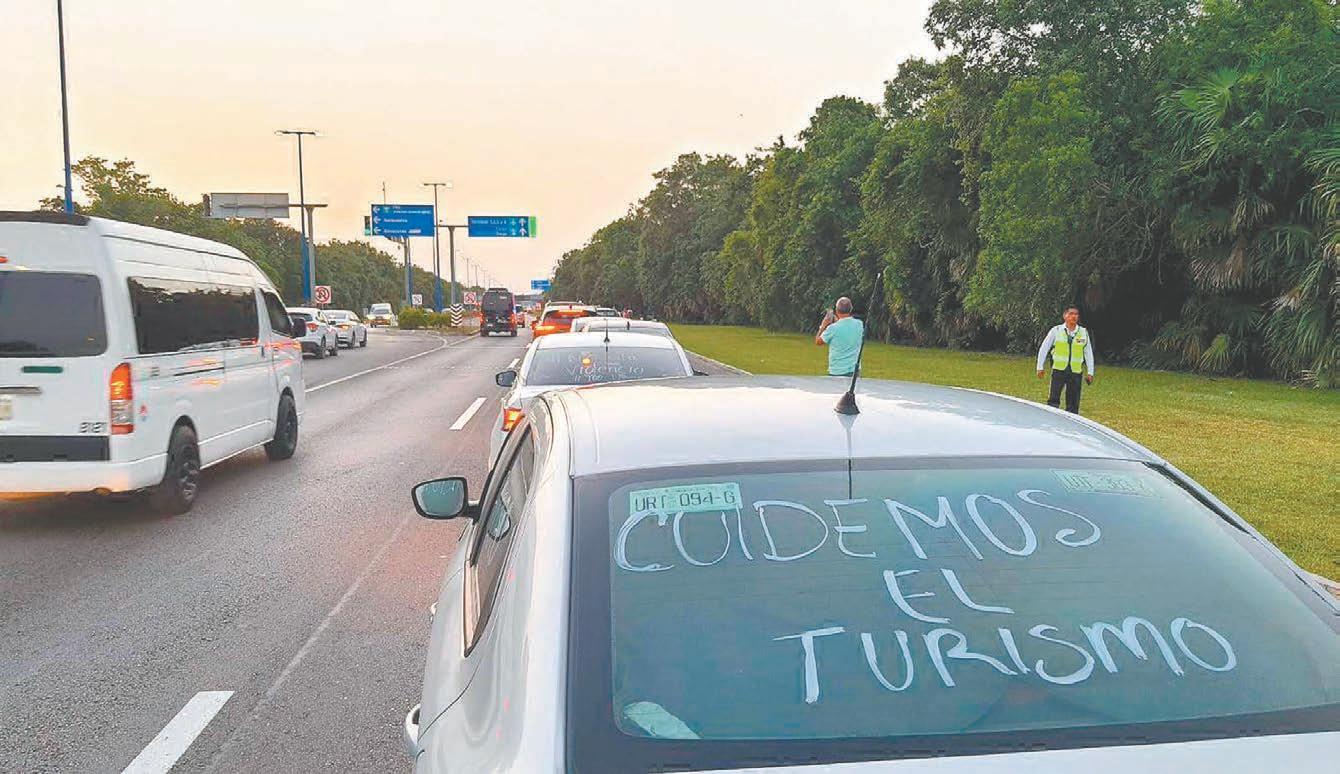 Aeropuerto de Cancún para exigir que cese el hostigamiento por parte de autoridades federales; los conductores, víctimas de bloqueos y aseguramientos de sus unidades, denuncian amenazas por parte de taxistas, operadores turísticos y fuerzas de seguridad / Vendedores y despachadores superan a meseros y camaristas en empleo, en Q.Roo.
