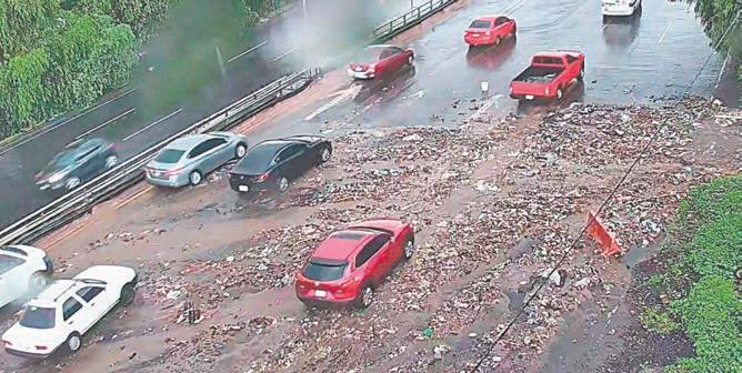 Además, se reporta que en la zona se registró no sólo lluvia, sino granizo, por lo que la zona se encuentra colapsada.