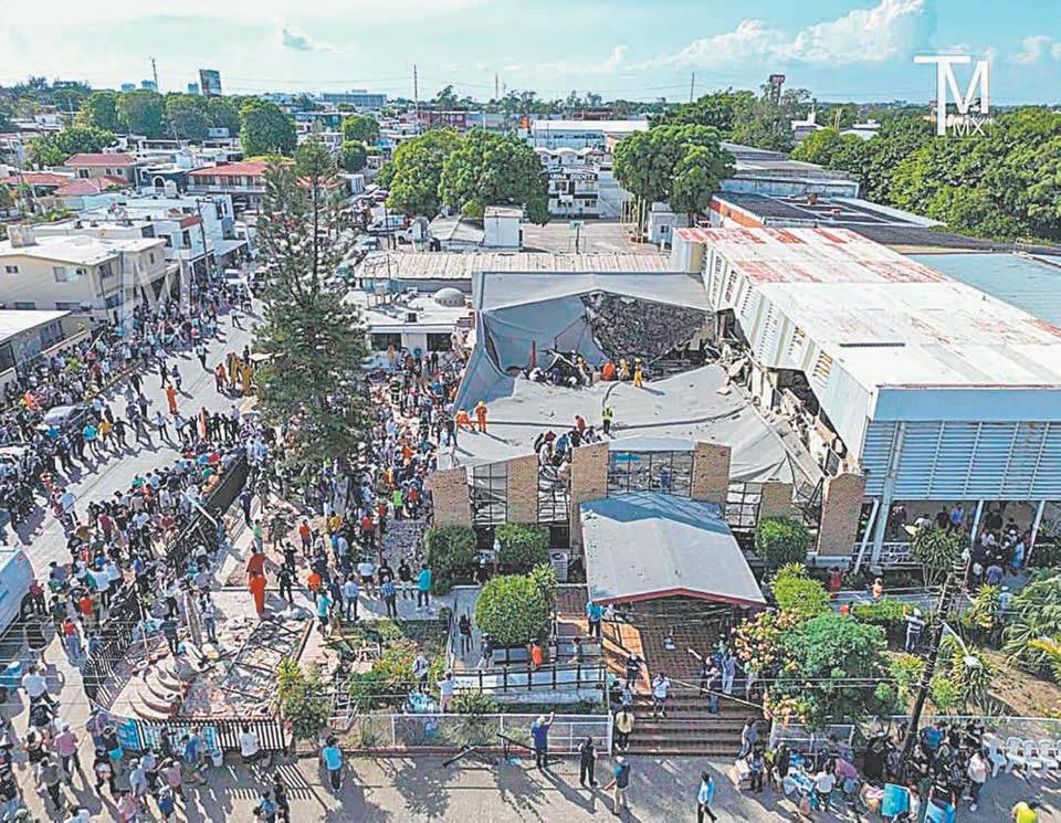 ENTRE escombros, brigadistas de diversas Corporaciones realizaban anoche trabajos de búsqueda y rescate de personas que se encontraban en una celebración eucarística en la parroquia de la Santa Cruz; las autoridades anunciaron que llevarán a cabo una investigación exhaustiva para determinar las causas del colapso y cuantificar la magnitud del incidente.- (POR ESTO!)