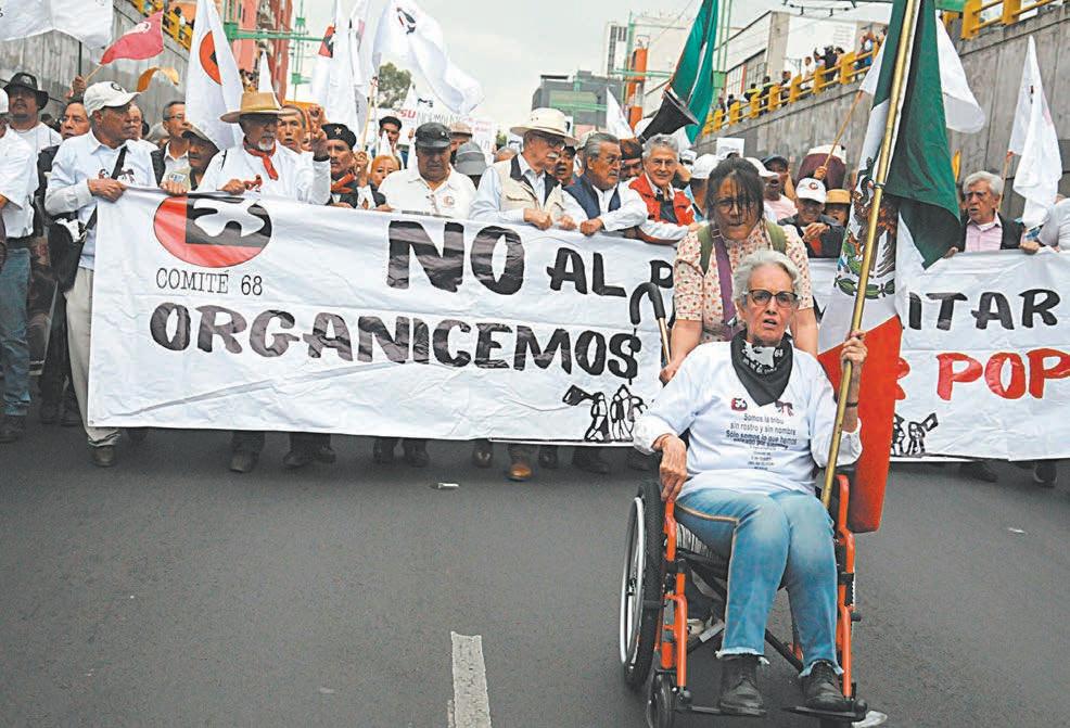 Los integrantes del comité, conformado por jóvenes que en aquel año participaron en el movimiento, encabezaron la movilización que fue de la Plaza de las Tres Culturas al Zócalo de la Ciudad de México.