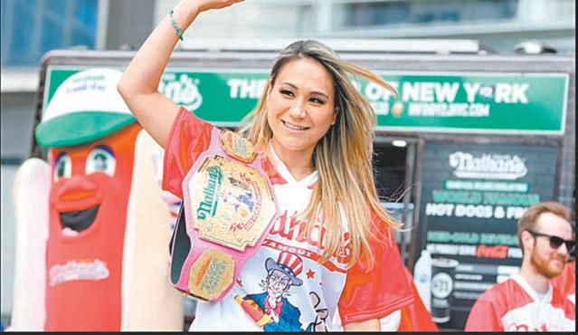 La campeona defensora Miki Sudo devoró ayer 39 hot dogs y medio para conquistar su noveno título del famoso concurso de comer este alimento de Nathan’s el 4 de Julio.