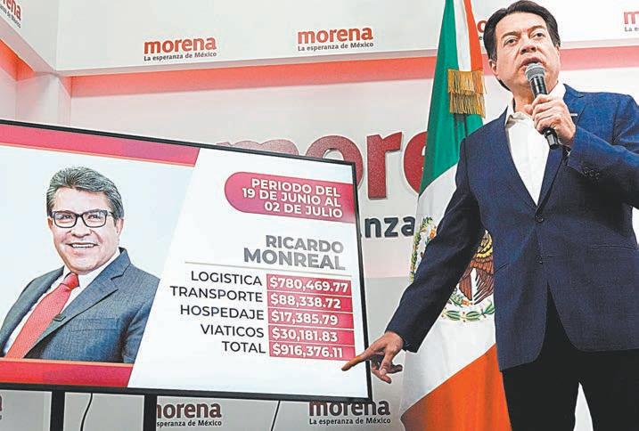 En primer lugar, Monreal ha gastado un total de con 916 mil 376.11 pesos. De esos recursos, se han destinado 780 mil 469.77 pesos en logística, 88 mil 338.72 en transporte, 17 mil 385.79 en hospedaje y 30 mil 181.83 en viáticos.