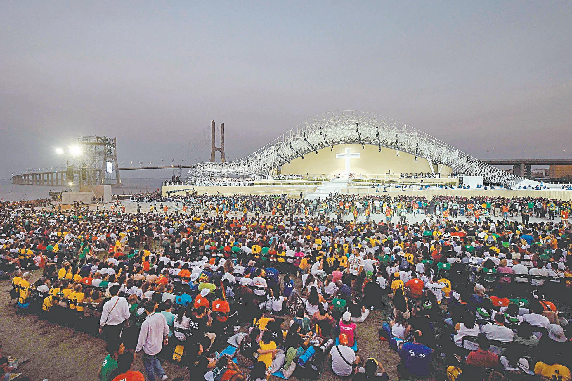 colorida marea de 1.5 millones de fieles se reunieron ayer en Lisboa para la vigilia de la Jornada Mun dial de la Juventud (JMJ), presidi da por el Papa Francisco.