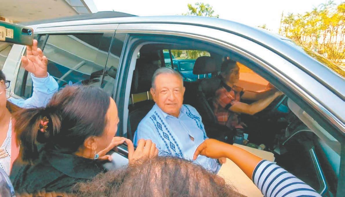 ANDRÉS Manuel López Obrador saludó a pobladores de Mahahual y de otras comunidades que fueron a verlo a la salida del Hotel Fiesta Inn, en la capital. Ahí recordó que ya iniciarán
