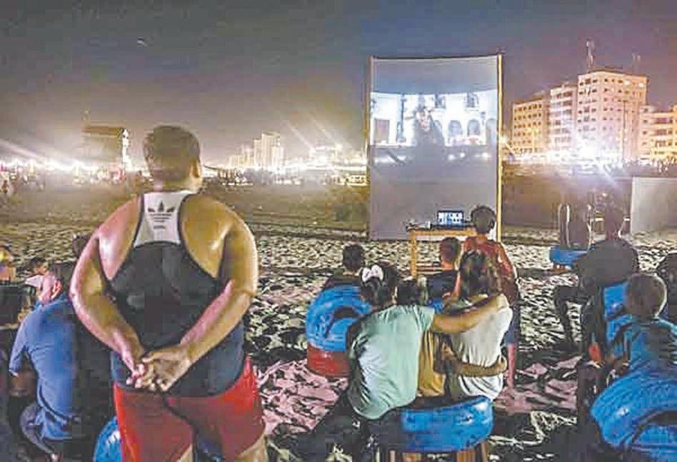 En la playa de la Franja de Gaza una pantalla gigante ofreció a los palestinos de este enclave un momento de alegría en este territorio privado de cine desde hace años.